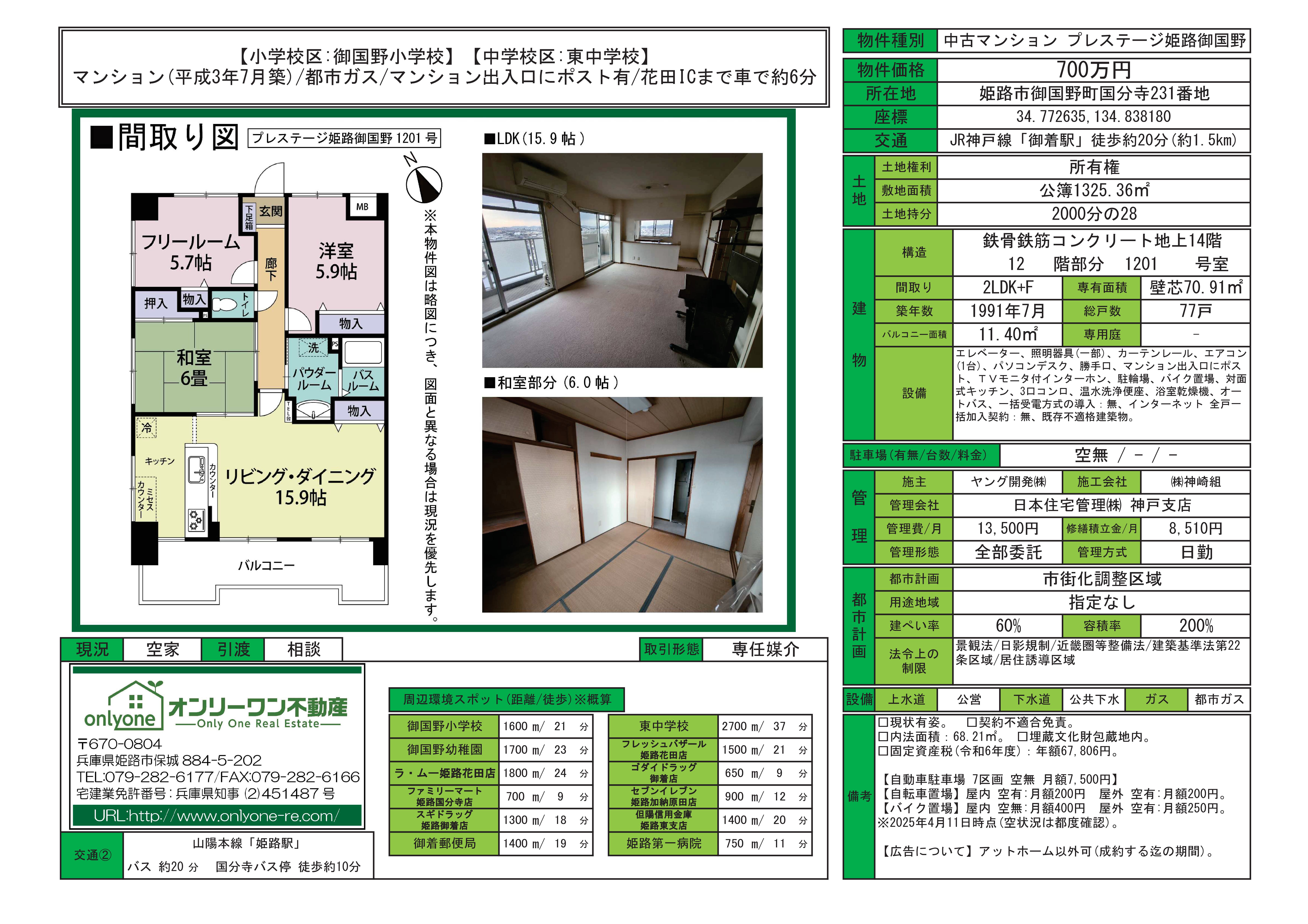 住所:姫路市保城884番地5 シティライフ保城202号